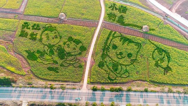 小猫钓鱼、孔融让梨、龟兔赛跑等造型活灵活现,一幅幅壮丽宏大的“大地景观”令人啧啧称奇。