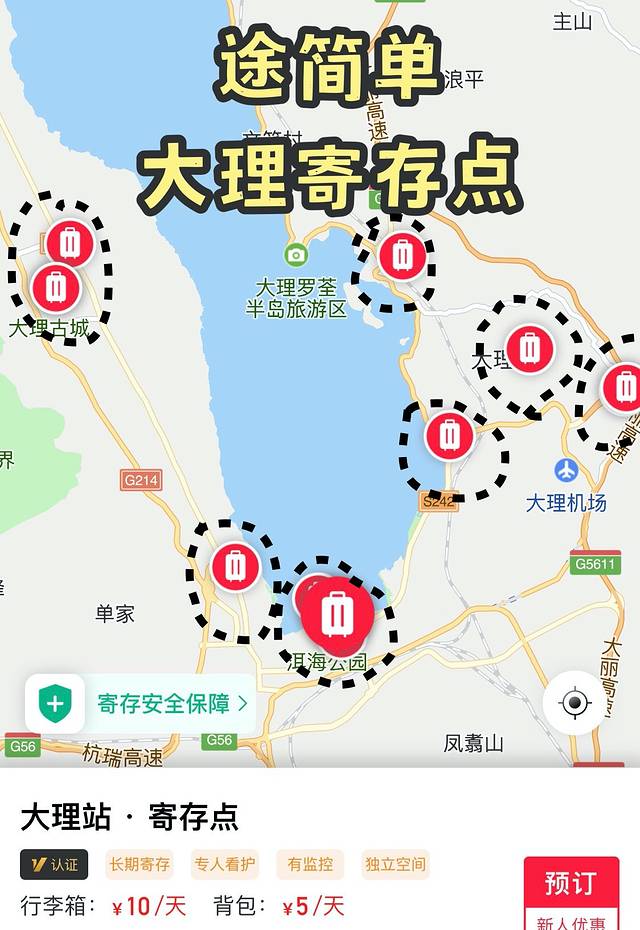 大理有10多个行李寄存处,很方便,可以在【途简单】在查看寄存点。