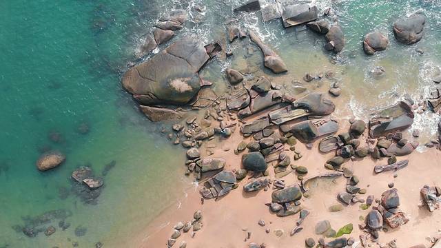 南屿退潮时可以去到小岛,航拍很好看,像小鱼骨沙洲,有电影同款 灯塔 ;南门湾在合适的角度航拍可以拍到类似❤️形的海,视频里第二个画面
