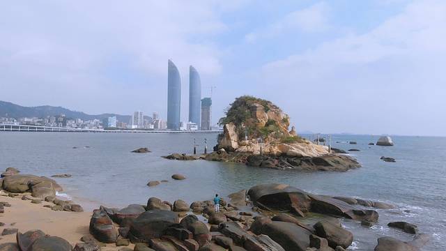 鼓浪屿上面的礁石,对面可以看到 厦门 双子塔