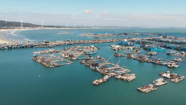 澳角村夹在大海的中间