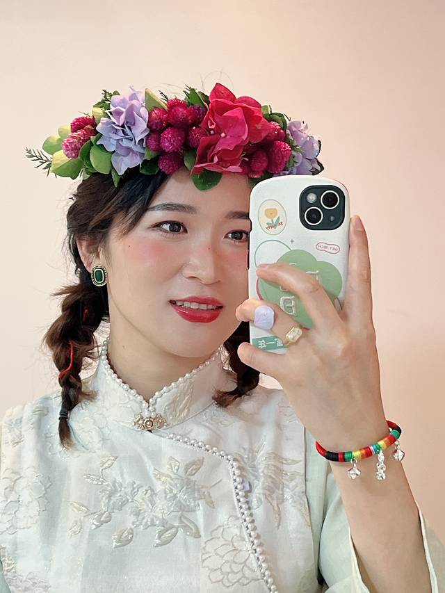 江边很多很多的奶奶贩卖花环,不过我倒是挺喜欢花环的,所以买了一个~戴了一整天*^O^*