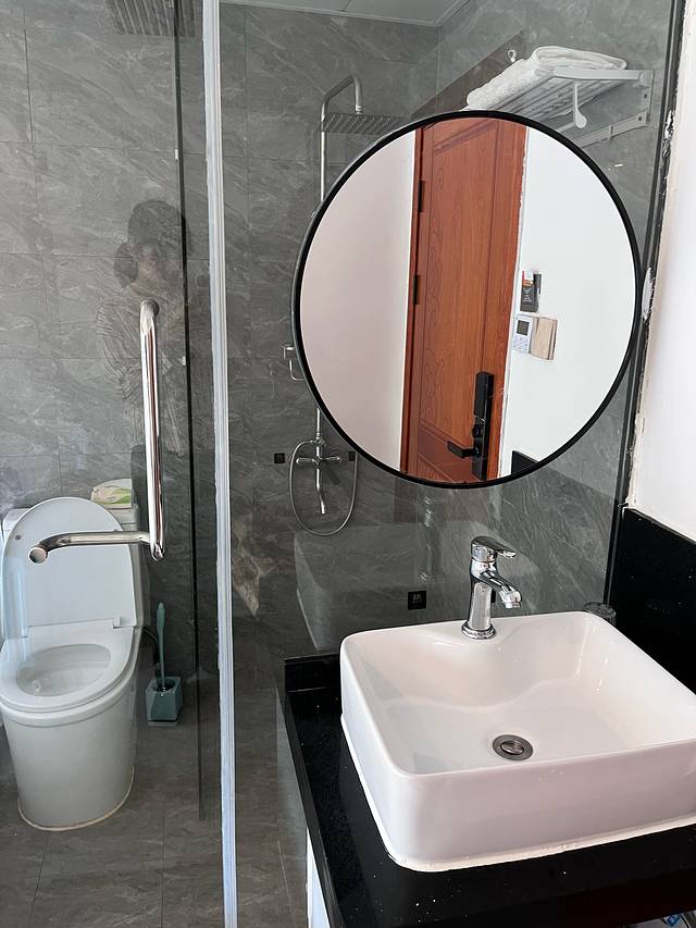 房间虽小,但是洗手间也有干湿分离~洗手台,24小时的热水