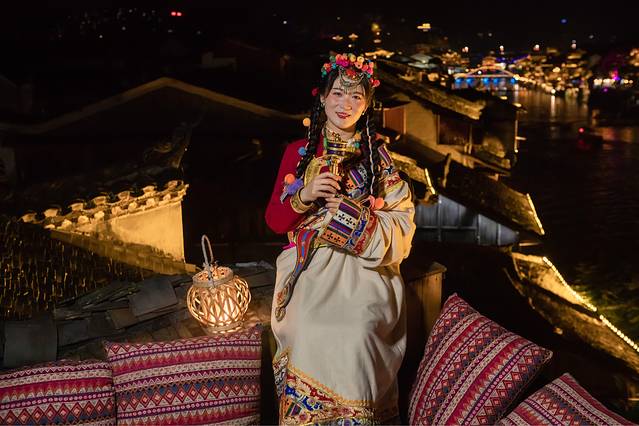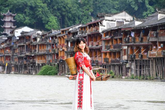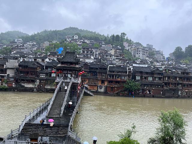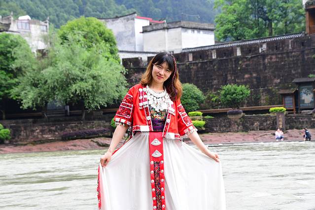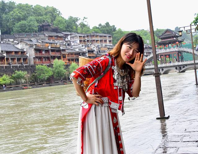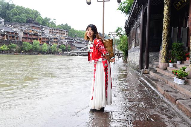 第二天下着雨,我在江边独自晃悠,被一个阿姨忽悠去穿民族服拍照…然后我1米七的个被拍出1.5即视感哈哈😆那个阿姨很乐观,说拍的是那种氛围感…