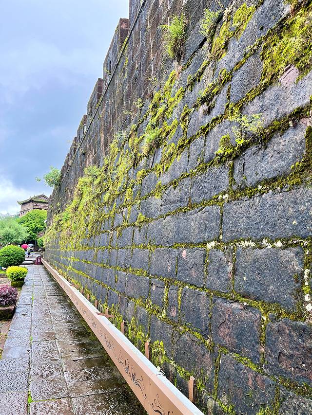古城墙上青苔在肆意横行,不过不要怕,她们没有侵占地面