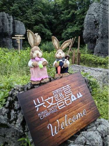 整个露营基地处于僰人巨石阵景区的广场位置,这里有千姿百态的石林群和郁郁葱葱的树林。