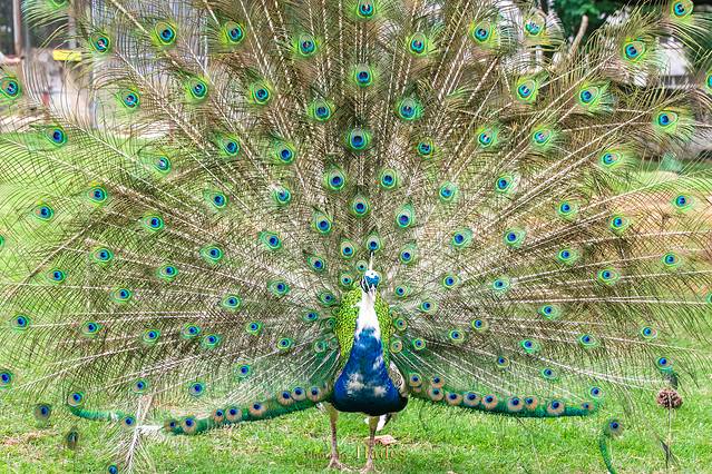 在孔雀园中,聚集了众多孔雀。蓝孔雀、白孔雀争奇斗艳的时候,一旁的珍珠鸡和火鸡也总往你身前凑,争宠的戏份被它们演绎的可爱而有趣。