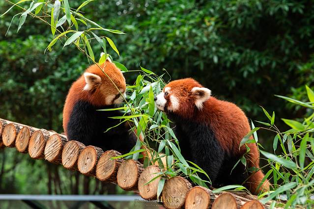 这里的小熊猫一家五口各个体态圆润,三只宝宝分别叫汉宝(武汉出生的宝宝)、可乐、薯条,