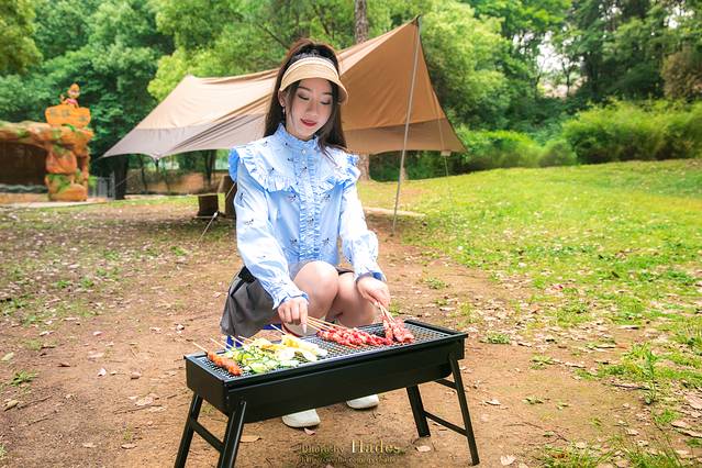 在九峰森林动物园的草地上,搭起帐篷,支起烤炉,和自然亲近,与动物为邻:山羊翠花偶尔嗲叫,胖香猪一直闷头喝奶,蓝孔雀们花枝招展,彩鹦鹉挨着啄喙整羽……