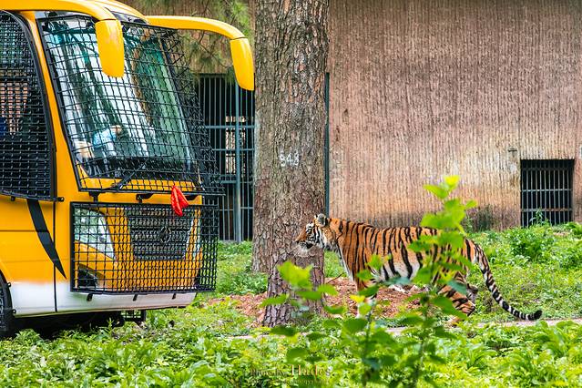 这些大猫们体型健硕,吼声洪亮。坐上钢网护体的投食车,穿越老虎和狮子的地界,看它们睡卧进食,看它们拍窗摇车,震撼刺激!