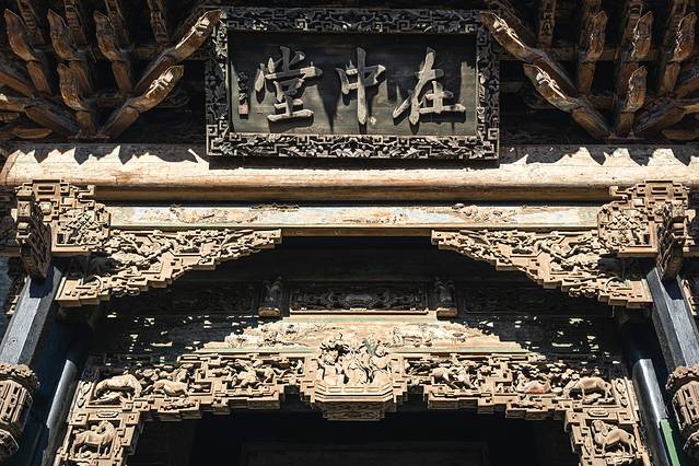 这段辉煌之路,如今依然能在有些破碎的渠家大院上看到些蛛丝马迹。大院门楼上明晃晃的“纳川”二字,寓意“海纳百川”,象征茶路对财富的流动与汇聚;渠家最大的长裕川茶庄,青石檐柱雕梁画栋,被称为“山西民居浮雕之最”;院内门楼上,四门垂莲柱与多层斗拱、挂落交相辉映,气势之恢弘难以言喻。