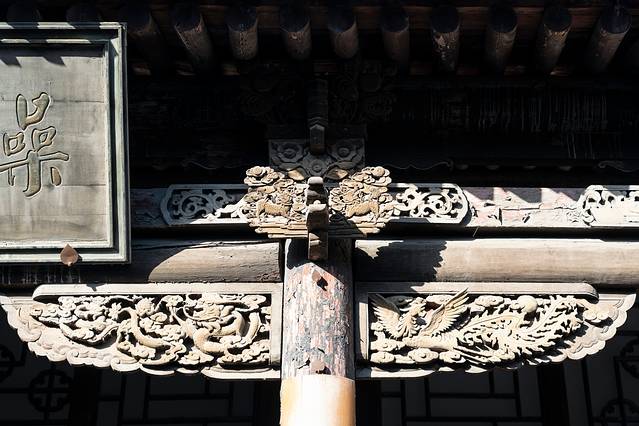 漫步大院的各个角落,随即能感受到管理方的用心:几乎所有常见的石雕、木雕等,都安置牌匾,对寓意做了详细的解释,这种弱化导游地位的举动,在景区里是极其罕见的。