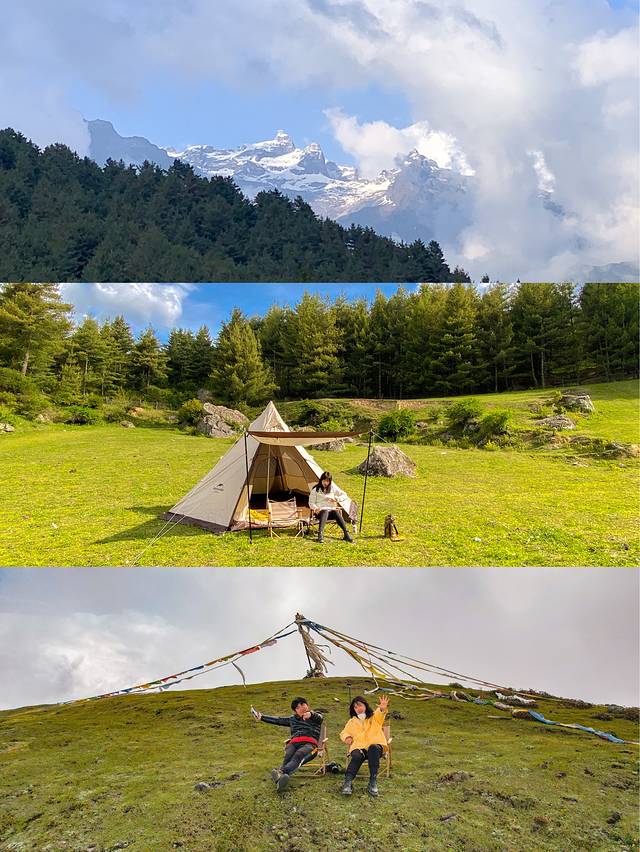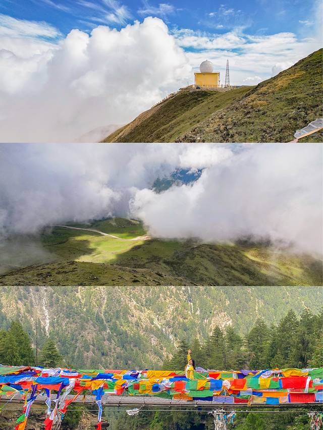 到了吉隆镇,往扎村的方向走。从镇里出发没多久就遇到检查站需要登记。就在检查站的旁边有露营地,跟老板沟通好后可以扎营,环境很不错。我们是自己带的帐篷就直接扎营了,可以看到雪山。往扎村的方向走路过扎村不要停继续沿着山路往前走会走到萨勒乡,这里几乎没有人。海拔4400-4500的空中草原,对面可以看到西夏邦玛峰。这不是最震撼的,继续向上攀升,走到路的尽头是一座山顶,这有一个气象台顺着气象台的方向看去,如果天气晴朗或者云雾飘散可以看到远处珠穆朗玛峰。坐在气象台边上的经幡处可以坐下好好享受一下空中草原,云雾散开像极了拉开幕布的舞台,西夏邦玛峰瞬间映入眼帘无比震撼。