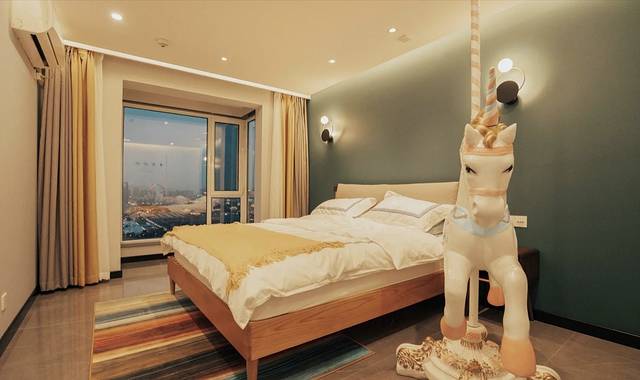 超温馨的卧室甚至把可爱的木马搬了进去,让你的少女心爆棚,任孩子们开心地玩耍