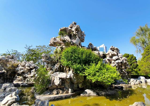 进入迎泽公园后便会看大奇形怪状的石头堆成的假山,而清谁水便从假山上的细缝里流出,简直美极了。
