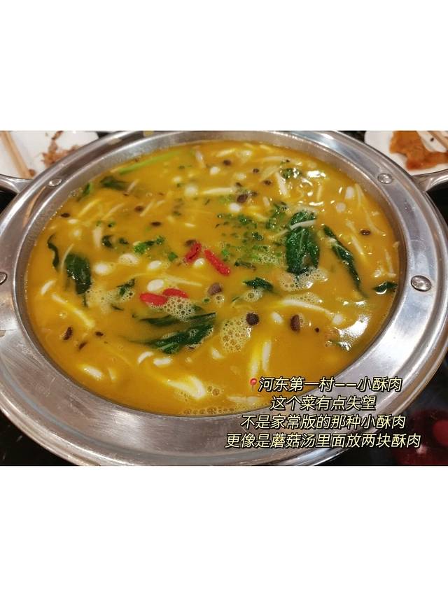 小酥肉吃起来更像是一道鲜蘑菇汤,酥肉不太新鲜,汤很好喝,是那种鲜亮的味道。