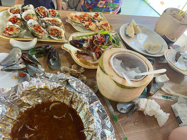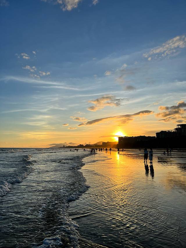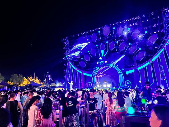 吃完饭休息后逛了逛大菠萝商场,然后去大东海浴场看了看夜景
