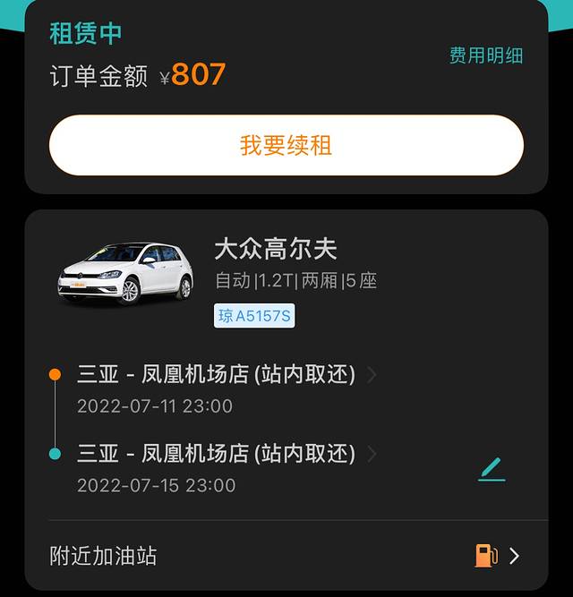 最开始从去哪儿订的自驾,但是为了防止纠纷产生,后来换了一嗨租车,租了个高尔夫每天100多块