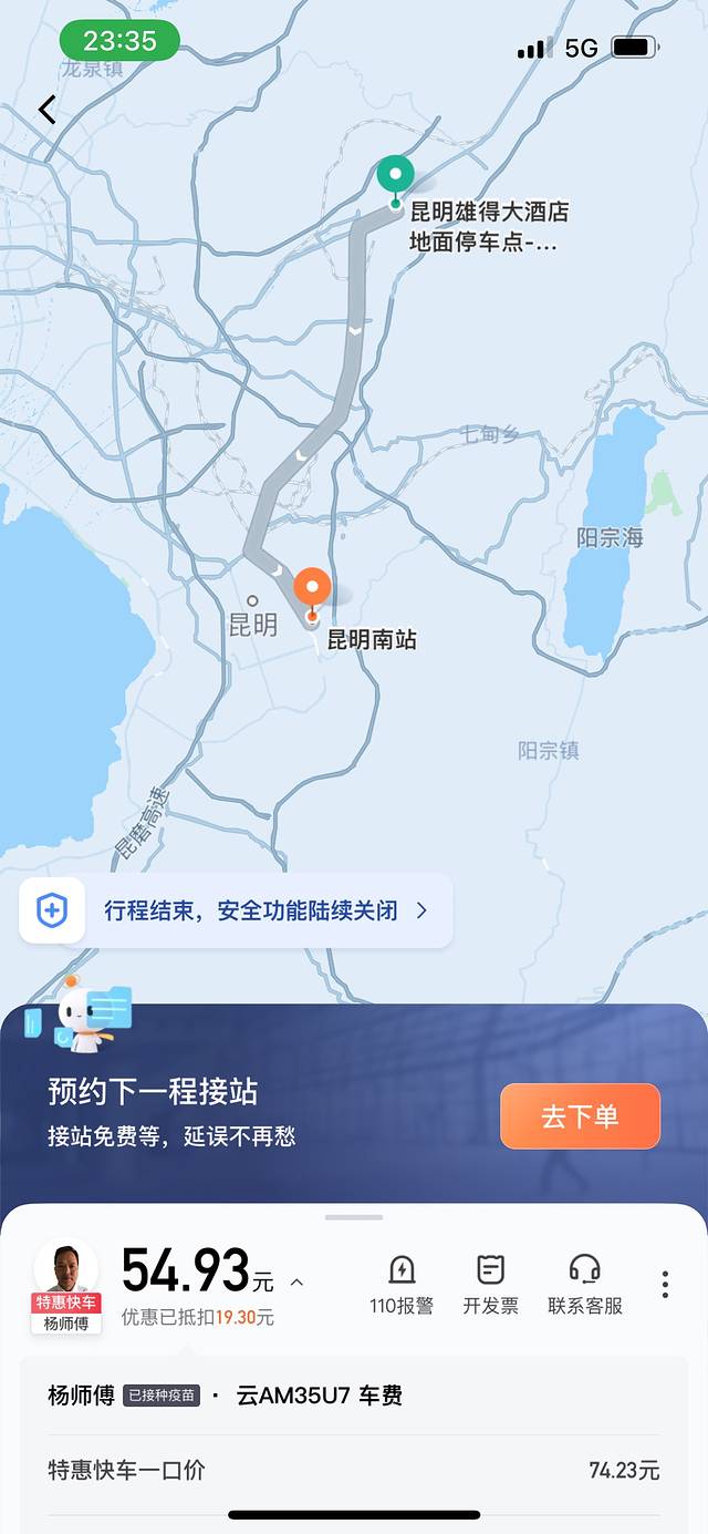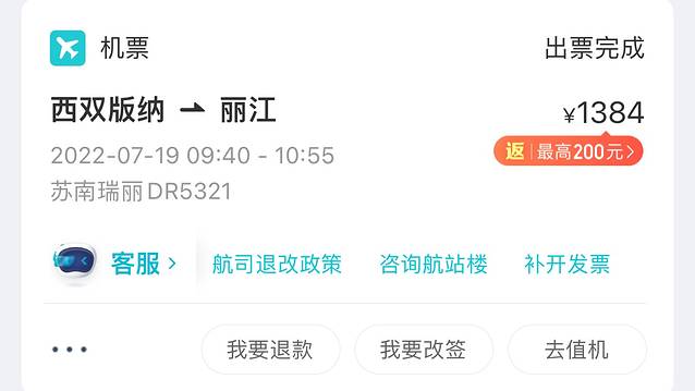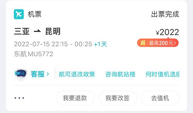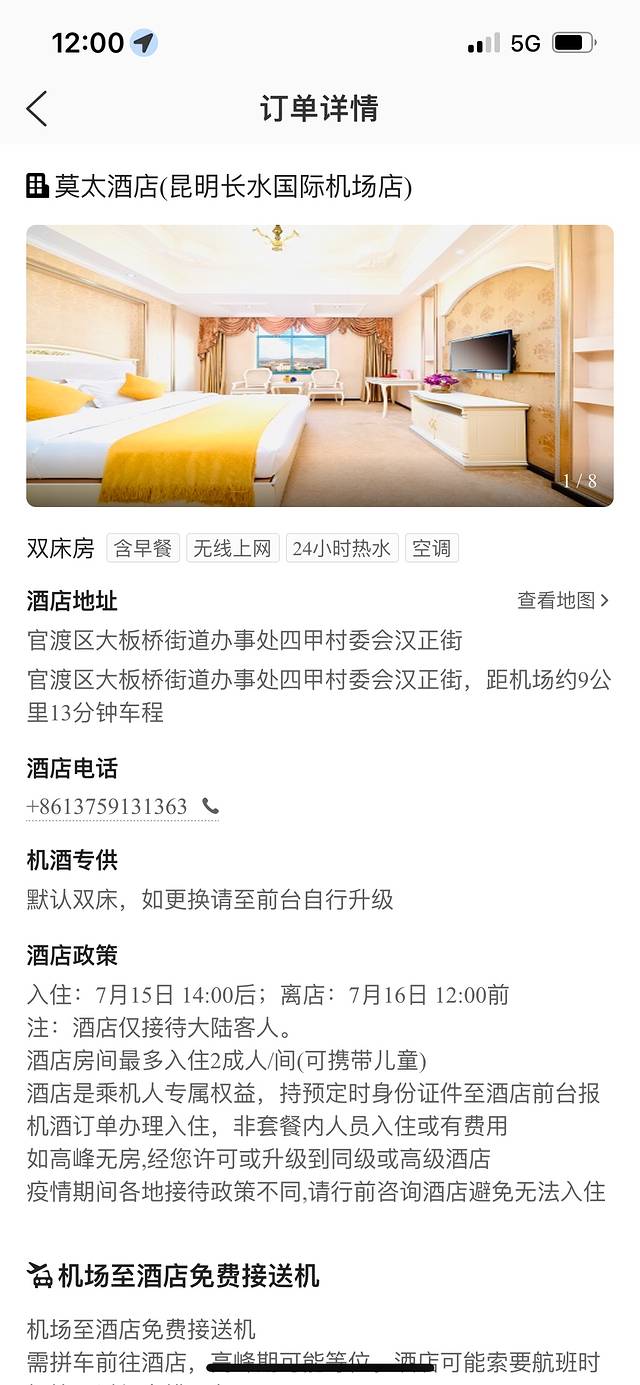 加完油后来到一嗨还车,没有问题,值机进站,机票是提前买好的直飞昆明,落地有接机酒店