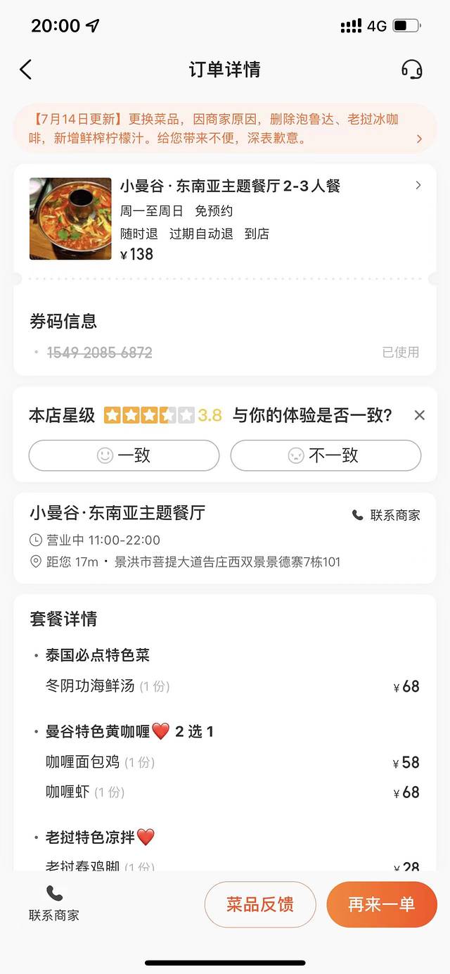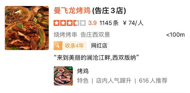 奶茶老板推荐+大众点评选了这家曼飞龙烤鸡,体验一下傣餐,怎么说呢味道一般吧,价格还可以