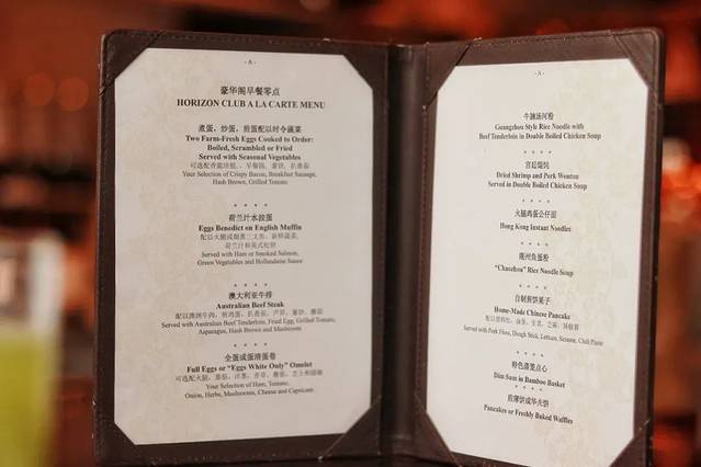 这里提供从早餐、下午茶、欢乐时光+轻晚餐以及其他时段小食在内的几乎全天候餐食,还有不间断的咖啡、茶和各式软饮。其中下午5点半-7点半的欢乐时光Happy Hour还有十多款酒精饮品提供!