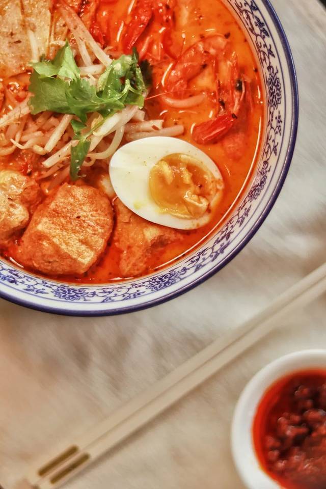 这一碗海鲜叻沙,让我梦回了槟城的时光!无论是汤底、豆泡、胖豆芽菜、大虾还是那只溏心蛋!一切都非常正宗!那碟微辣带肉味的自制辣椒酱绝对不可错过!