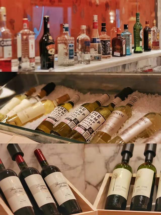 葡萄酒选品挺有意思的,意大利灰皮诺、法国霞多丽、智利的长相思和赤霞珠、阿根廷的马尔贝克,全都是经典产区易饮年份。烈酒也非常齐全,自己动手做些鸡尾酒也很好玩哦!