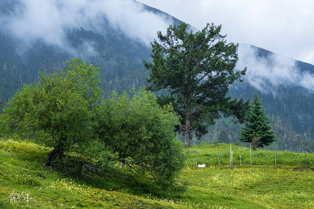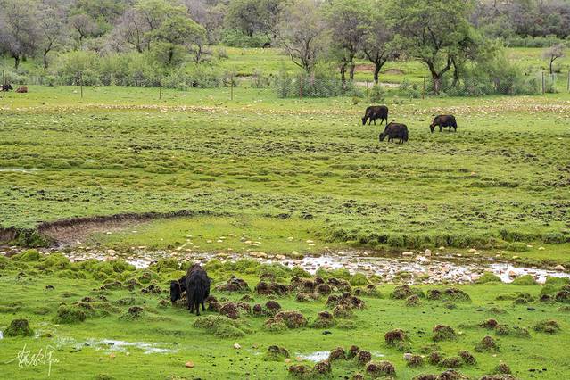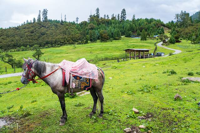 草甸上、森林里,都是雨水洗过的痕迹,整个感觉格外地碧绿苍翠,深呼吸时的氧气充足,空气里闻着清新的草木香,与西藏其他地方真的不一样。
