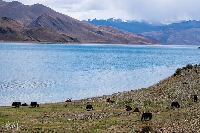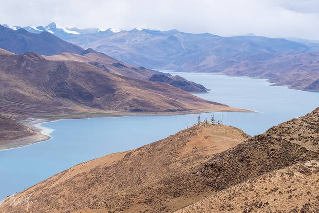 羊湖真的是西藏所有湖泊里我觉得最美的了。千姿百态,每个画面都不一样,羊湖的整个形状就像是珊瑚枝一样,或者用蝎子来形容会更贴切,正是因为它的湖岸线这样向四周伸展开来,蜿蜒曲折,也给它带来了许多不一样的画面,无论你在哪个角度也没办法看清羊湖的全貌。