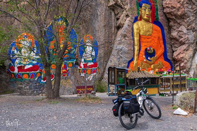 早晨泡了点麦片,九点左右出发,目的地是羊湖脚下的岗巴村,距离拉萨80公里,准备了一个礼拜时间去环羊湖。一口气到了聂当大佛才休息,看了一眼墙上的大佛正准备继续往前骑,遇到了两位骑友。