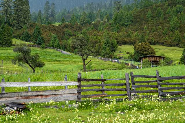 海拔3700米的鲁朗小镇,周围雪山林立,峰峦叠嶂的原始森林,纳麦村、鲁朗国际旅游小镇、扎西岗村、高山牧场,这一个个点合起来才算得上是鲁朗。鲁朗在色季拉山脚下,林芝特殊的高原温暖半湿润气候使得鲁朗在夏天时,常常烟雨绵绵、云雾弥漫,草原上的花儿竞相开放,到处都是木篱笆与漫山牛羊,鲁朗的田园风光实在美不胜收。