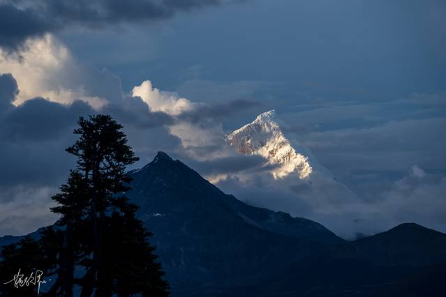 好不容易到了色季拉山口,我反正是永远也没有在这里见过南迦巴瓦峰,大概是没有缘分吧。让路人用手机帮我拍了一张照,结果整个朋友圈的评论都是,哎呀怎么这么黑,都黑到看不见了,没事黑显瘦……骑行有不黑的嘛!已经晚上八点了,我不敢再作停留,还有20公里才能到鲁朗小镇,我飞奔一般地火速下了山。在路上意外看到了南迦巴瓦的主峰,开心!
