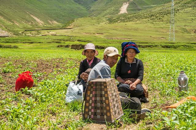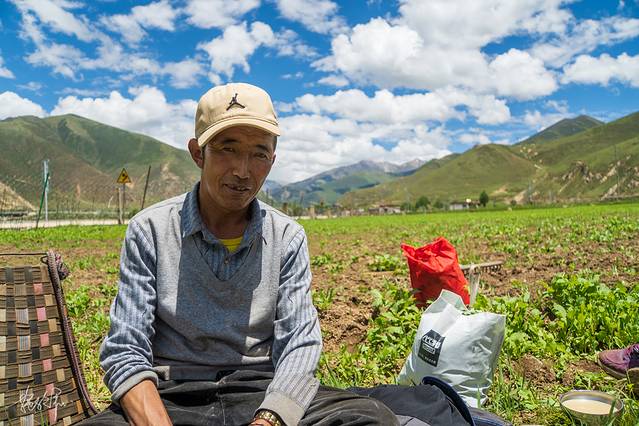 阿佳和他老公的劳动工具还在身边,问他们是在种田吗?原来现在是种青稞的时候,田里还有一些他们种好了的油菜。他们基本上不会讲汉语,只能听懂一点点,我当然也听不懂藏语,但有时候一个微笑就是最好的肢体语言。我想这大概就是我想要一个人骑行的原因,这样就会遇到不一样的人。