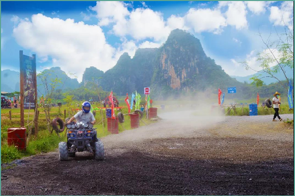 来到跑道前面,选好心仪的越野车之后,戴好头盔,做好安全措施之后,马上开车!驾驶越野车在峰林跑道中穿梭,引擎轰鸣声,一阵阵沙尘,感受速度与激情中的热血!太好玩啦!特别是边开车还能边欣赏喀斯特峰林美景,感觉太棒啦!