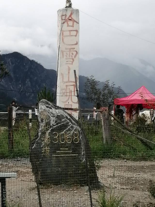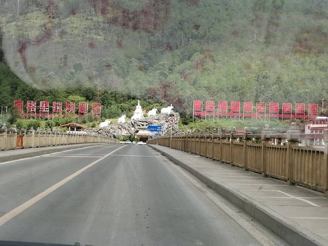 我也试图叫车上的人下车去拍照,最后只有我一个人出来拍个到此一游,在旁边向远看,景色确实是美,住下酒店看照片才发现原来是有名的哈巴雪山。