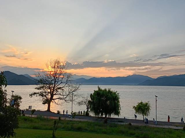 太阳照在洱海边上的小树林,怪自己没带相机(跑步中)