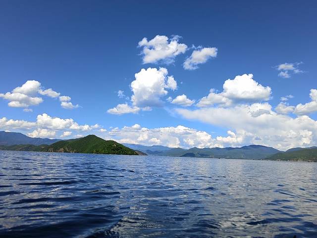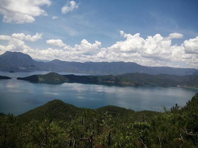 中午1点左右,终于到达泸沽湖的售票点停车场,门票70元,未成年半价。步行2分钟后,观景台能高清欣赏全景的泸沽湖,一个字形容她——美。