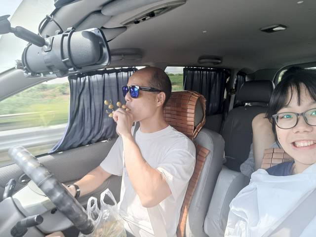 这里刚好有警察查身份证,查看完证件后提醒坐在第二排的双J要系安全带(我们之前一直都忘记了第二排也要系安全带,谢谢警察叔叔)