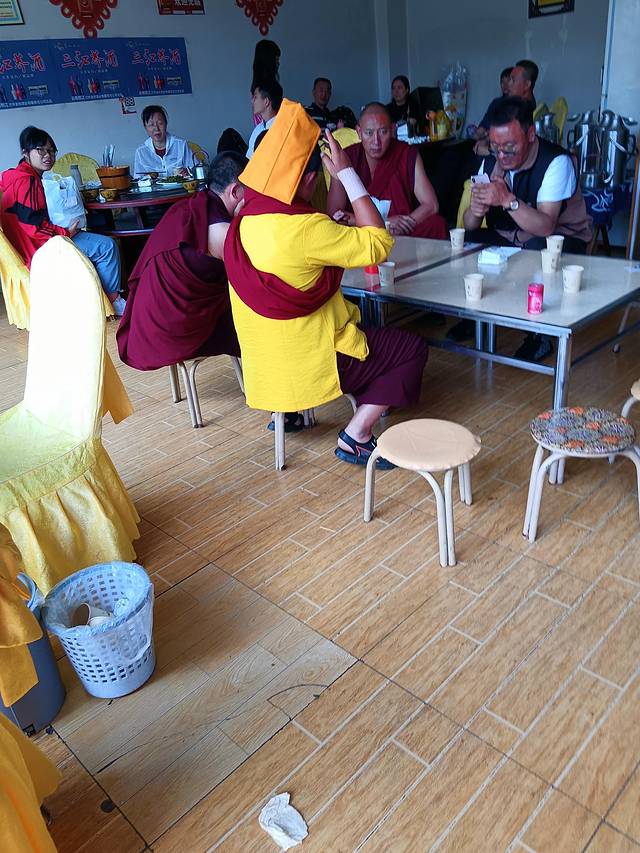 从普达措离开已经是中午1点,在路上找了个吃饭的,准备结账时,走入几个大师,偷偷拍个背影。