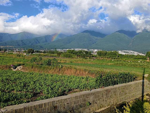 跑向洱海途中,蓦然回首,彩虹悄悄地从苍山爬出来。