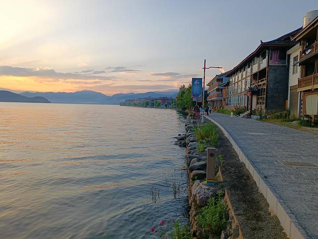 本想今天睡过好觉,但突然有晨跑的冲动,查看大理海拔2000左右,6点起床,洗刷再加一杯温开水,出门刚看到日出,看一下导航,知道大概方向,单人向洱海出发。
