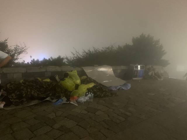 建议直接登顶,到天街处,寻找就坐的地方,租大衣30-40元,野餐垫30元,被子50元……