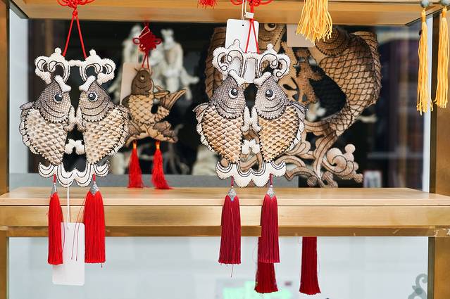 赫哲族人都有一双巧手,他们不仅善于渔猎,还能将鱼皮制成衣服,用鱼皮、鱼鳞制画。对于他们而言,一条鱼全身都是宝,鱼肉可以作为食物,鱼皮能制衣,鱼鳞、鱼骨能作画。在同江有四条鱼皮加工生产线,每年加工生产的鱼皮画20000余幅,制作旅游纪念品40000余件,这些精美的鱼制艺术工艺品,远销北京乃至海外。,实现了年产值1000多万。当地还采用了当下最火的直播带货,以线上线下相结合的方式,用鱼制生活艺术品,为当地人创造了财富。