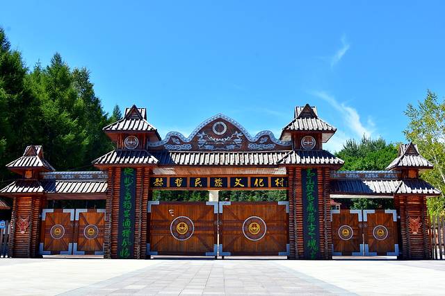 街津口赫哲民族文化村,距离同江市区仅45公里。驱车进入村子之前,就看到民族村的门楼上写着“赫哲民族文化村”。古朴的门楼,中间上一道大门,大门顶部是一条翱游的鱼直冲云霄的场景,左右两侧各有一道小门,呈现了对称美。村子里的图腾广场,气势恢宏,独具美感。这是由一根主图腾柱和四根景观图腾组成,都是采用法国金花石雕刻而成。图腾柱顶端为圆形,底座为方形,象征天圆地方,寓意四平八稳。