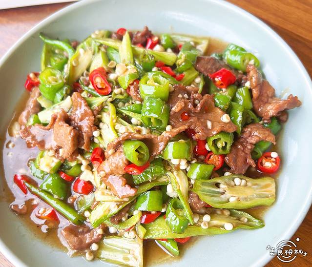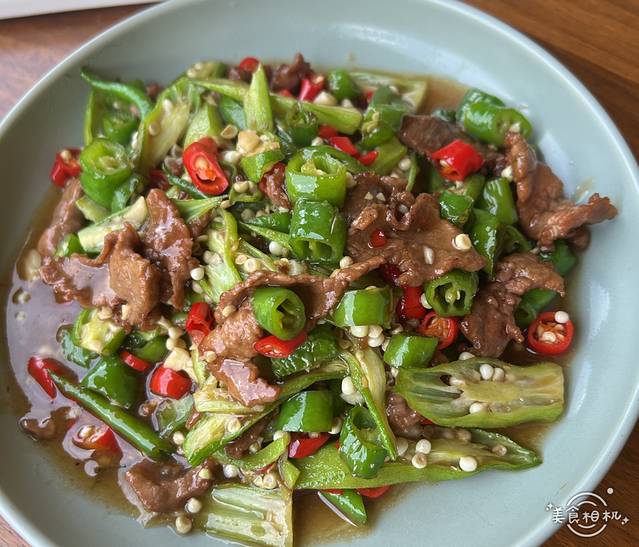 这个太推荐了,微辣,秋葵炒牛肉,秋葵太好吃了