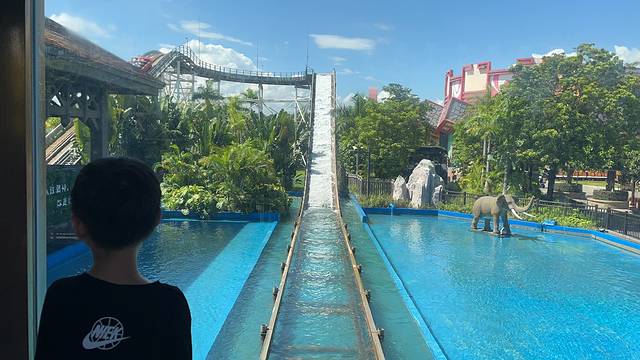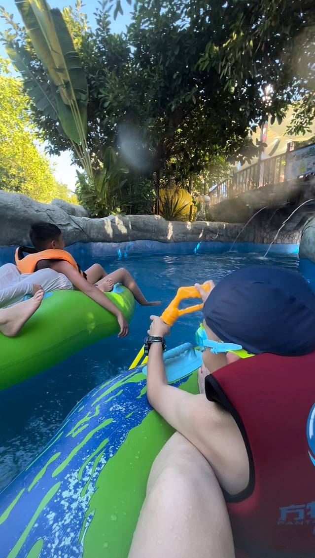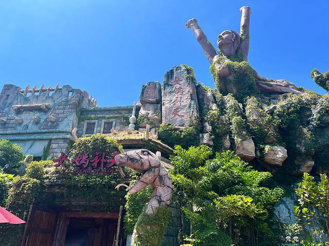一个古典特色的园区,集合AR特效的各种项目,女娲补天,穿越火焰山等等。还有刺激的飞越河谷,不怕的娃子玩了三次。😂