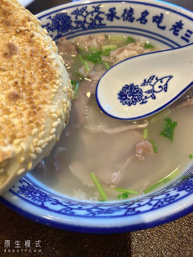 本来计划直接返程回家 途中想喝承德的正宗羊汤,那就索性满足自己的味蕾 来一碗鲜味浓浓的羊肉汤 每人一个麻酱烧饼 真是美哉美哉的旅行哇,十几年前的回味仍没有改变
