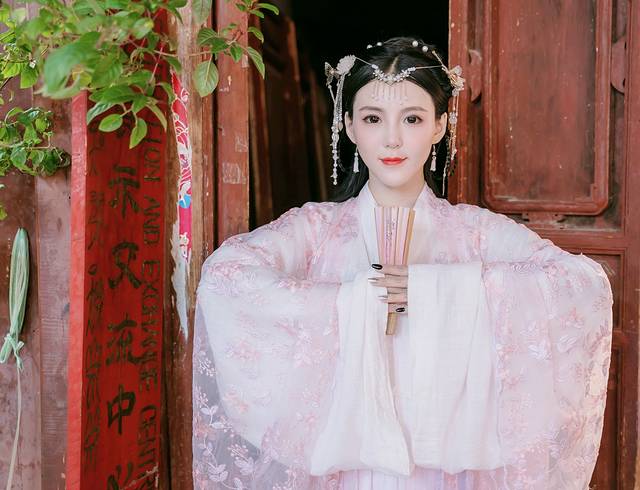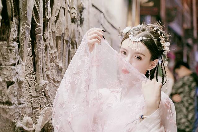 对于汉服来讲,我觉得拍照的时候尽量做作一点,越做作越好看,如果你的身材和手很好看,相信我不拿道具用姿势凹造型绝对比拿道具要好看。手摆成兰花指,放在额头一侧、胸口处、腰上方,简单来讲就是头疼腰疼胸口疼,或者一前一后指向远方。肩膀尽量地放松一高一低的状态,可以想象一下古代的美人那种蒲柳之姿的感觉。