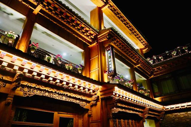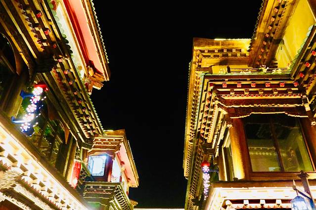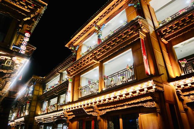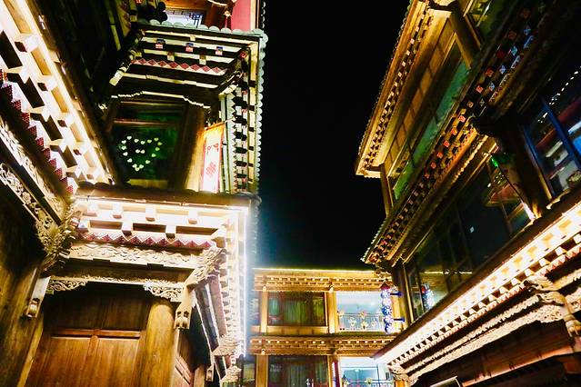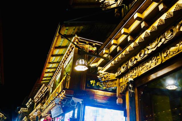 我们到达丽江的飞机晚点,到达的时候已经是凌晨,超级困的我拖着行李到客栈,放完行李后还是忍不住看看凌晨两点多的古城。古城内木楼青瓦,古街石巷,小桥流水,站在古城东大街上,像梦境般真实地站立在古色古香的画面中。