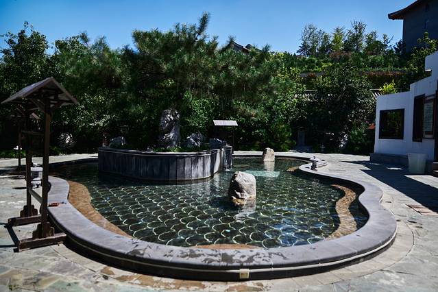我们因为人多,所以定了四合院。院子内有4间房,庭院中间就有一处泡池,想要泡温泉,打电话给前台就会有服务员过来给你放水。